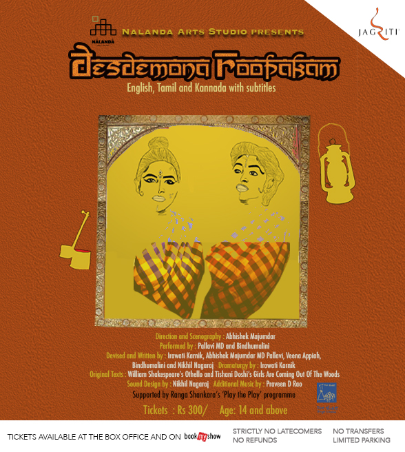 Desdemona Roopakam is produced by the Nalanda Arts Studio , an independent arts studio working across forms of art practice and research. It is Supported by Ranga Shankara's 'Play the Play' programme